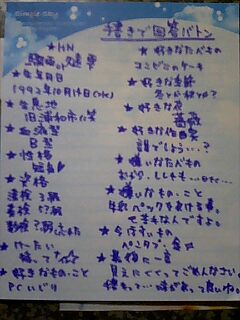 時間が余ったので『お絵描き』していました((笑 英語の時間に描いたやつは気分で図書委員っぽくなっちゃっいました。 社会の時間に描いたやつは気分でパッツンにしました。 国語の時間に描いたやつは気分でゴスロリにしました。。。ってかなっちゃいました。 理科の時間に描いたやつは気分で制服にしました。 数学は……時間が余りませんでした((爆 ってか一体私は何をしに北辰テストにいったのでしょうかねぇ………((汗 あっはははははー まぁドンマーイ((ォィ っていうよりも。。。いきなり今日祖母が家に来て夕食を一緒に食べる……そうなんです。。。 前にもあったなーーこーーゆーーパターーン。 何でいつも急来るんでしょうか…?抜き打ち家庭訪問的な??? ……急いで掃除をする人の身にもなって頂きたい。 それでゎ。 |