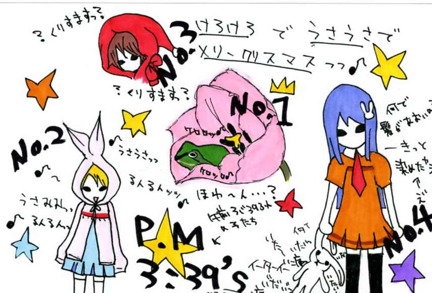 きっと絶対、クリスマスまで学校あったら私の欠席日数0は実現しません。((苦笑 やばい…気を紛らわせないとやってけない…((ぇ ってな訳でさっきまでぐでぇーってしながら絵を描き描きしてたのですが……。((ォィ スキャンする余力ねぇ…((ォィ だるい。寒い。気持ち悪い。頭痛い。お腹痛い。色々と痛い…。 何かさぁ…私の体ってクリスマス頃に一年間あまり来なかった蓄積された((ぇ 具合悪い系のもの発散されるんじゃないでしょうか・・・OTL えっとね。風邪とかそんなんじゃないっス。 熱とか咳無いのでね…。 アバウト毎年の経験から行くと2日位で治ります。 早ければ一日...。 乗りきらないとね…(´・ω・`;) う゛ぁ゛ぅ゛ー誰か撲殺して呪文唱えて生き返らして下さい…… |
